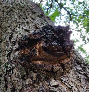 Kreftkjuke – også kjent som «chaga», vokser på bjørk hele året, men er lettest å finne når bjørketrærne står uten blader. Den er ikke en matsopp, man kan tørkes og brukes på samme måte som te eller kaffe. Utsiden er kullsvart og klumpete, mens innsiden er oransje til rustbrun.